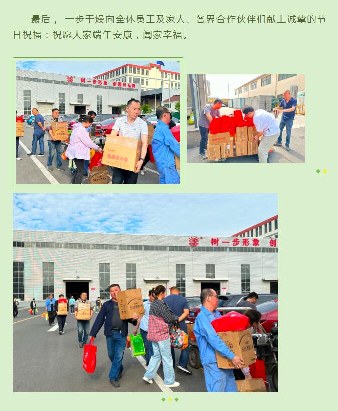 一年一端午,一歲一安康。端午節(jié)是中華民族傳統(tǒng)節(jié)日,為弘揚傳統(tǒng)優(yōu)秀文化,增強員工幸福感、歸屬感,常州一步干燥設(shè)備有限公司在端午節(jié)為全體員工發(fā)放端午夏令品福利,并送上節(jié)日的祝福,讓大家度過一個暖心、祥和的端午佳節(jié)。