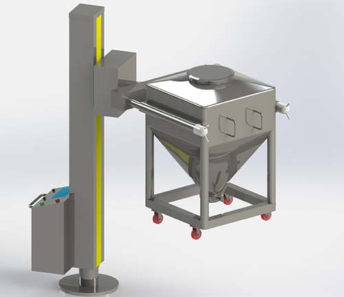 提升機主要應用于制藥工業物料的運輸、加料轉運。也可以和混合機、壓片機、膠囊填充機、包裝機等設備配套使用。同時在化工、食品等行業也有廣泛使用。但是現有的提升機采用液壓系統的機械提升方式,結構復雜,加工精度要求高,安全性能差,維護保養困難,特別是易污染環境,無法滿足制藥行業使用要求,同時也滿足不了制藥GMP標準要求。