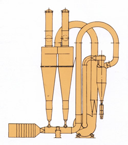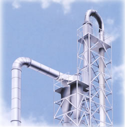 FG系列正負(fù)兩極氣流干燥機(jī)的工作原理是將濕物料的干燥分為兩步完成。原料先由二級(jí)干燥之尾氣和補(bǔ)充熱氣的混合體進(jìn)行一級(jí)正壓干燥,使用后的高溫低濕尾氣排出機(jī)外, 干燥后的半成品由新鮮的熱空氣進(jìn)行二級(jí)負(fù)壓干燥。