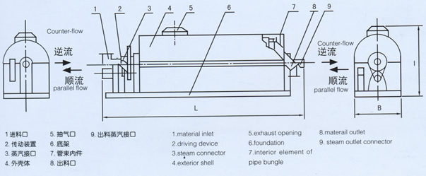 GZG管束式干燥機是間接加熱接觸式干燥機,既可順流干燥也可逆流干燥。是目前大部分國家使用的較廣泛、較好的干燥機之一。