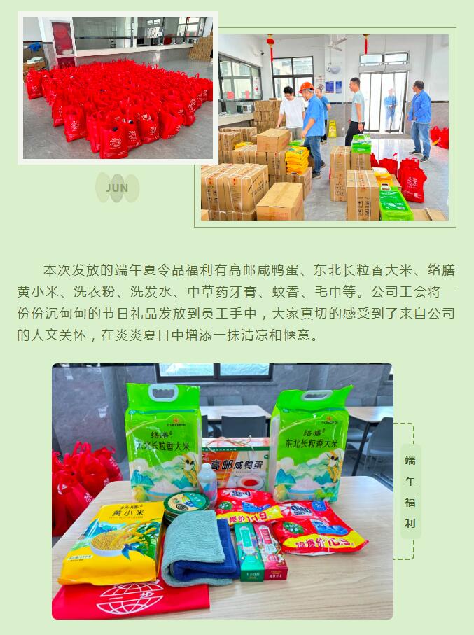 一年一端午,一歲一安康。端午節(jié)是中華民族傳統(tǒng)節(jié)日,為弘揚傳統(tǒng)優(yōu)秀文化,增強員工幸福感、歸屬感,常州一步干燥設(shè)備有限公司在端午節(jié)為全體員工發(fā)放端午夏令品福利,并送上節(jié)日的祝福,讓大家度過一個暖心、祥和的端午佳節(jié)。